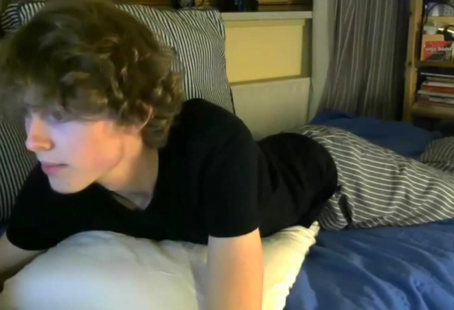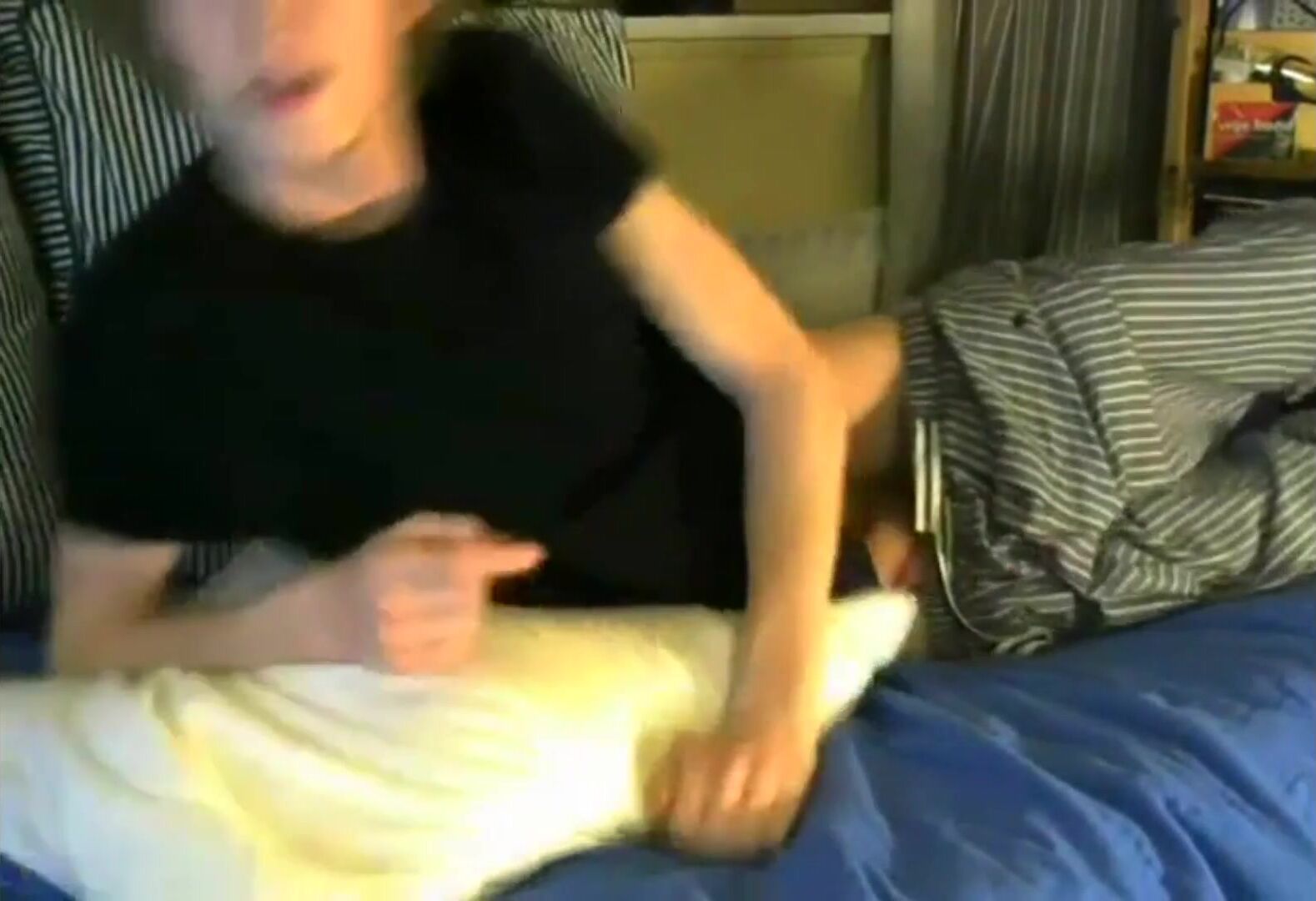 Watch as Cute Camboy pleasures himself with a massive cock while lying on his bed ...