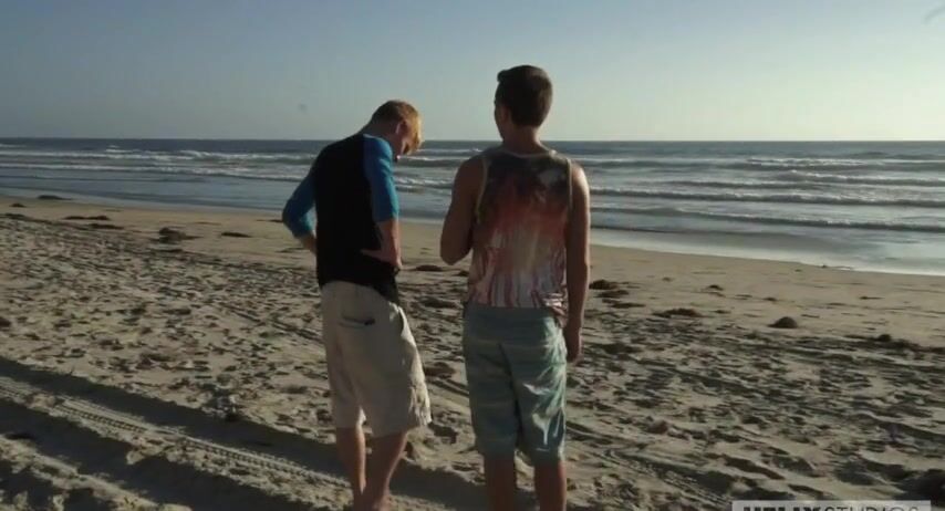 Two boys on a trip to the beach find a quiet spot for a bareback fuck.