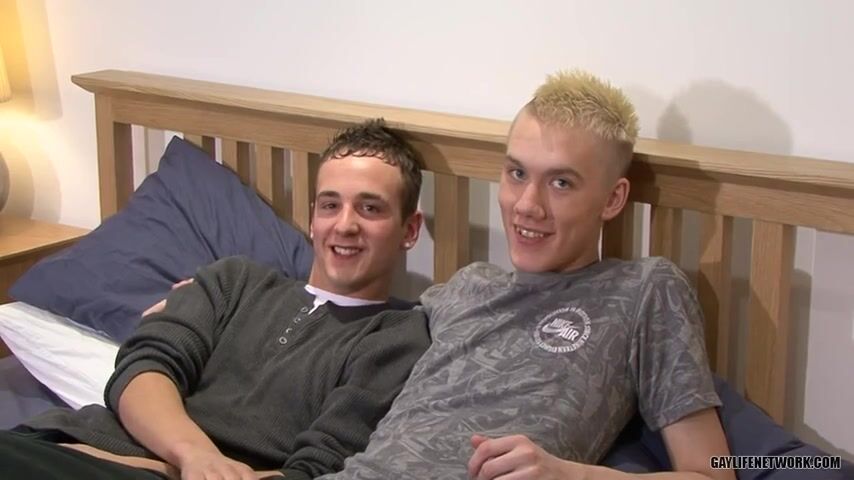 Two boys blond and brunette meet in bed and gay porn