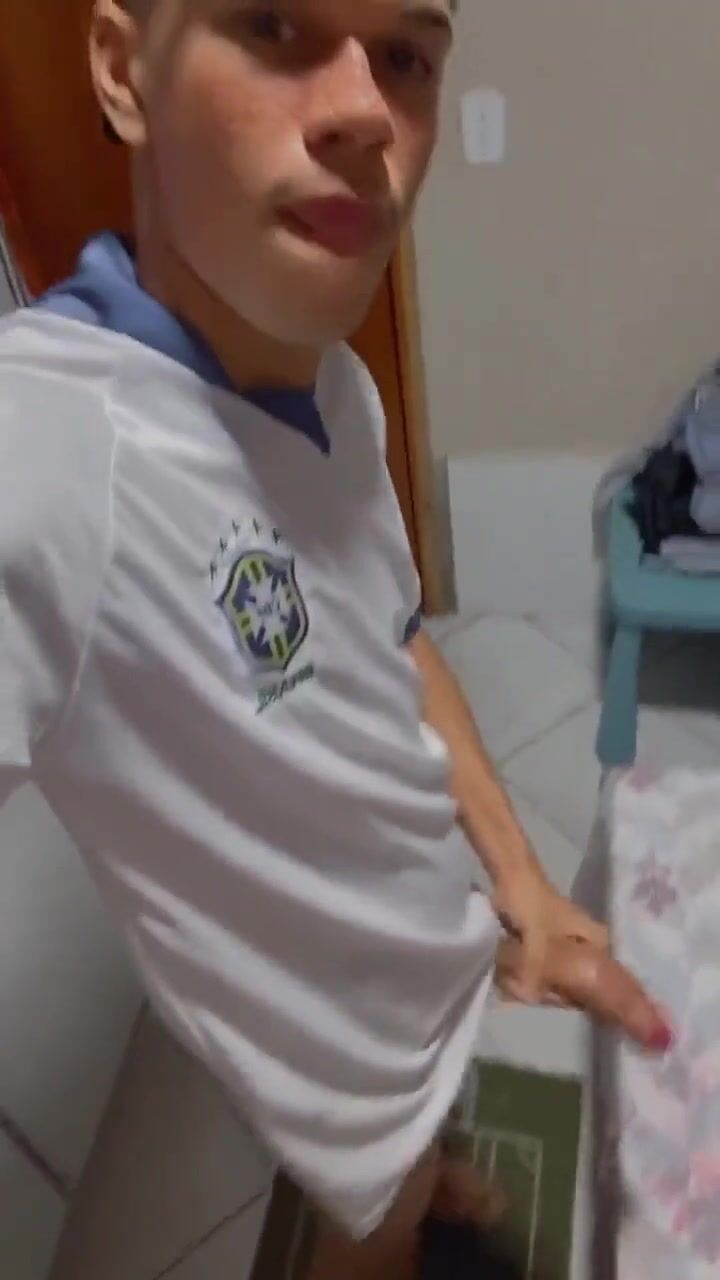 Skinny boy big dick stroke and cum