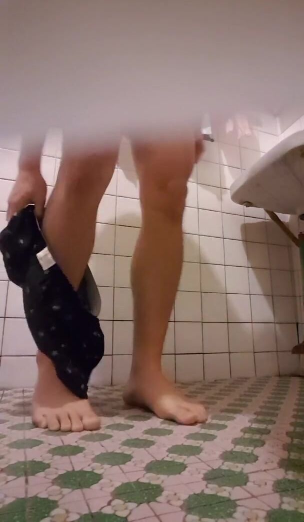 Cute twinky teen Femboy strips naked and showers for you after the gym.