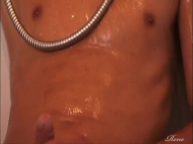 Gay Porn Videos Cute tanned twink Rene takes a shower and then goes back to his bedroom to wank his cock until he cums