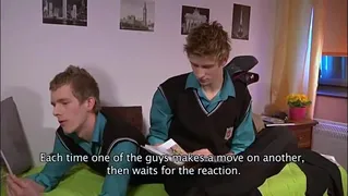 A boy teases his dorm mate before taking a risk and flirting with him in the hopes of scoring a fuck.