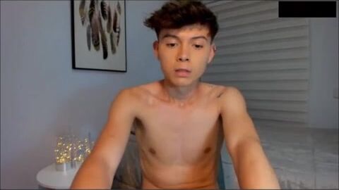 Watch as Cute Camboy pleasures himself with a massive cock while lying on his bed ...