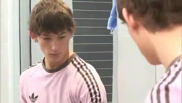 Roommates shower and help each other get off watching gay porn