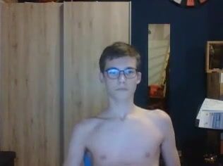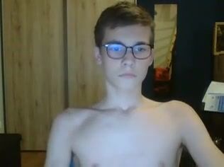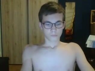 Cute boy porn in glasses shares his cum