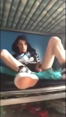 Watch as Cute Camboy pleasures himself with a massive cock while lying on his bed ...