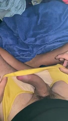 Watch as Cute Camboy pleasures himself with a massive cock while lying on his bed ...