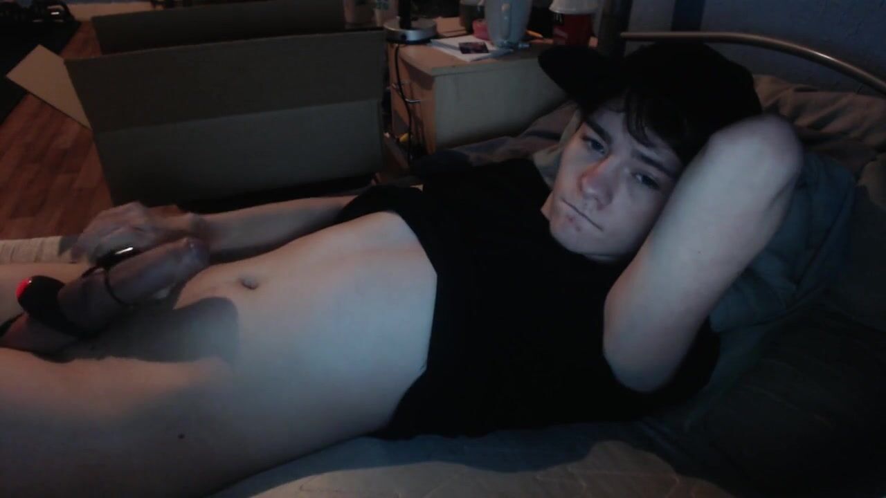Watch as Cute Camboy pleasures himself with a massive cock while lying on his bed ...