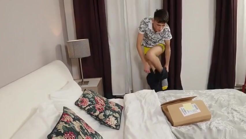 Watch as Cute Camboy pleasures himself with a massive cock while lying on his bed ...