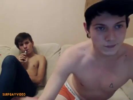 Cute twink giving a blow job to his friend