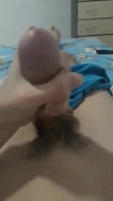 Horny twink playing with his uncut dick