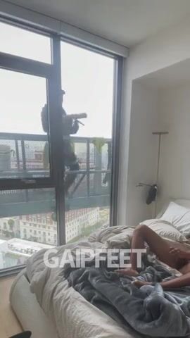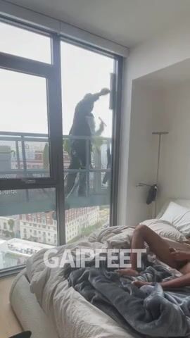 Video - Window Cleaner Jerks Off in Front of the Crowd!