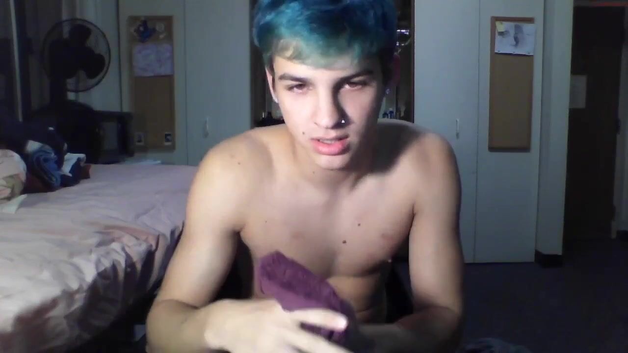 Watch as Cute Camboy pleasures himself with a massive cock while lying on his bed ...