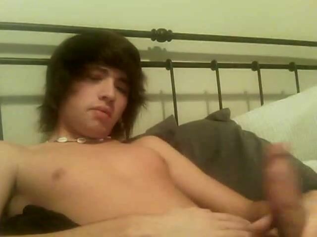 Watch as Cute Camboy pleasures himself with a massive cock while lying on his bed ...