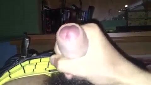 Twink cum shot through basketball shorts