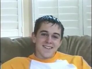 Cute baseball twink jock strips and jacks off, moaning when he cums